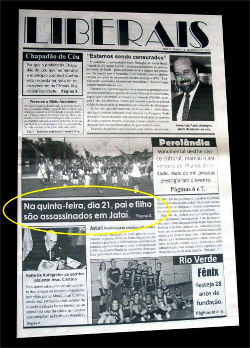 "Na quinta-feira, dia 21, pai e filho são assassinados em Jataí". O jornal Liberais trouxe essa manchete em sua edição nº 113 (de 23/10 e 07/11/2010)